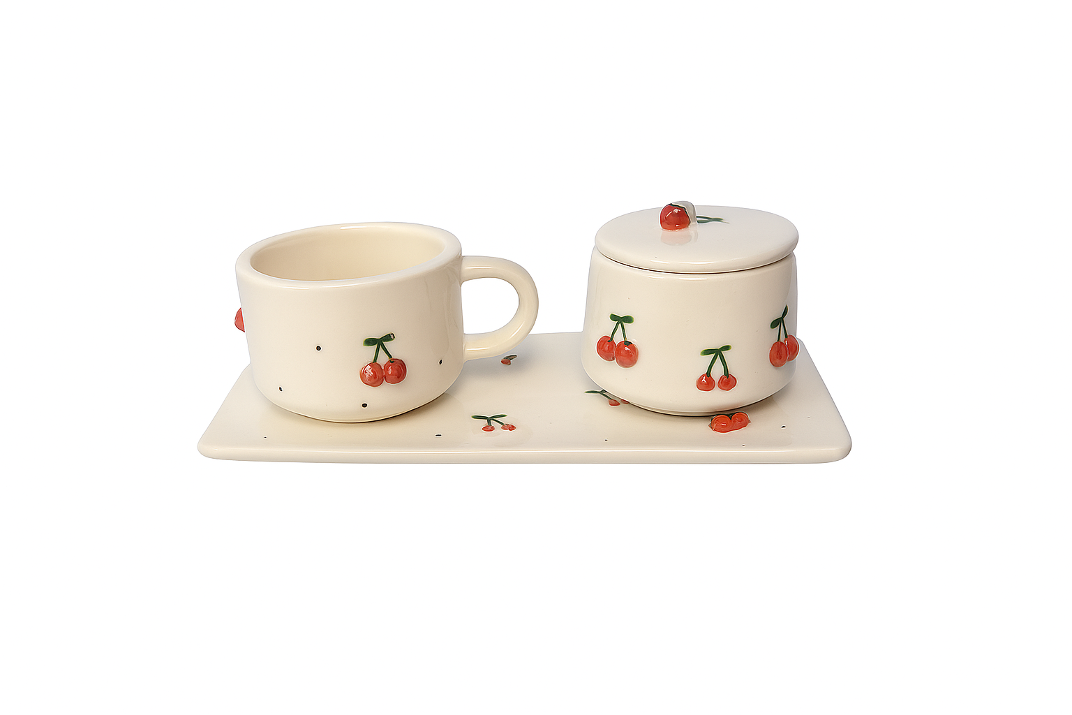 ست تک نفره البالویی یک فنجان و قندان همراه سینی مستطیل